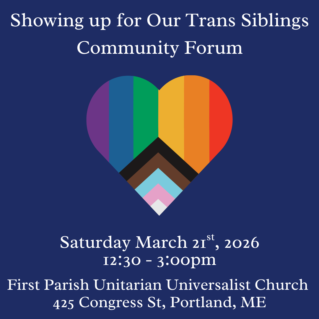 in partnership with Democracy Maine, the Equality Community Center, EqualityMaine, MaineTransNet, Maine Women’s Lobby, Multifaith Justice Maine and PFLAG, join us at this timely community forum, which will address heightened threats to the trans community and focuses on strengthening the efforts of trans allies to: