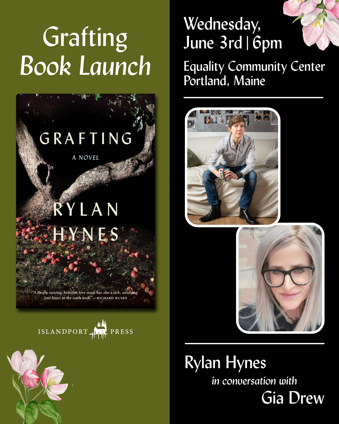 Come celebrate the launch of Rylan Hynes' luminous debut, Grafting; a story about second chances, forbidden love, and the courage to cultivate beauty in unforgiving soil. Presented in partnership with Islandport Press, Print: A Bookstore, and the Maine Writers & Publishers Alliance, Rylan Hynes will be in conversation with Gia Drew. To preorder Grafting and to RSVP, click here!